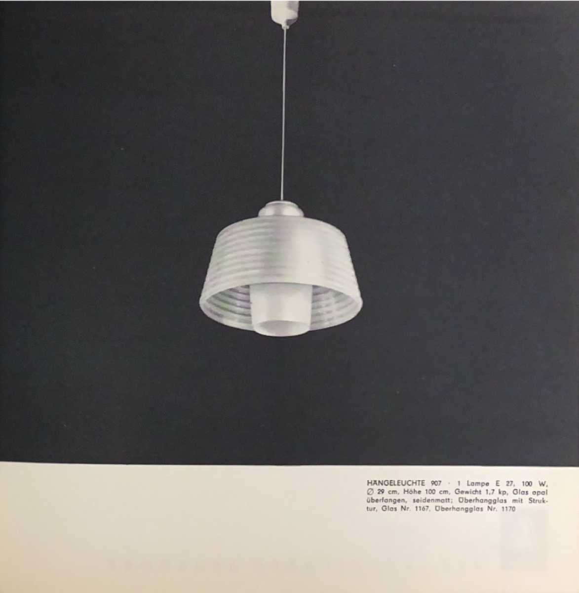 Diese Leuchte wurde vom VEB Leuchtenbau Arnsdorf in Sachsen produziert. In den Lampenschirm aus seidenmatte Opalglas wird eine E 27 Glühbirne verbaut. Das äußere Glas hat eine struktuierte Oberfläche. Das innere Glas hat die Kennungsnummer 1167 und das äußere die Kennungsnummer 1170. Sie hat einen Durchmesser von 29 cm und eine Höhe von 100 cm. Zu finden im Katalog „Katalog VEB Leuchtenbau Arnsdorf 1964“ von IKA Electrica.